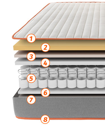 - Núcleo de molas ensacadas: molas de aço ensacadas uma a uma que oferecem a máxima adaptabilidade, ajudando-o a não notar os movimentos do seu parceiro durante a noite.