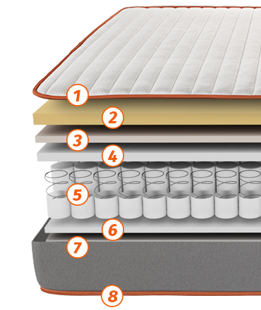 - Núcleo de molas ensacadas: molas de aço ensacadas uma a uma que oferecem uma máxima adaptabilidade, favorecendo o não notar os movimentos da outra pessoa durante a noite.